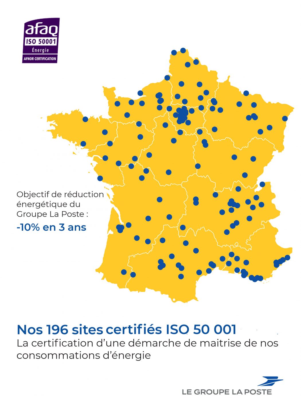 Le groupe La Poste a obtenu la certification ISO 50001 sur un périmètre de 196 sites d’activité.
