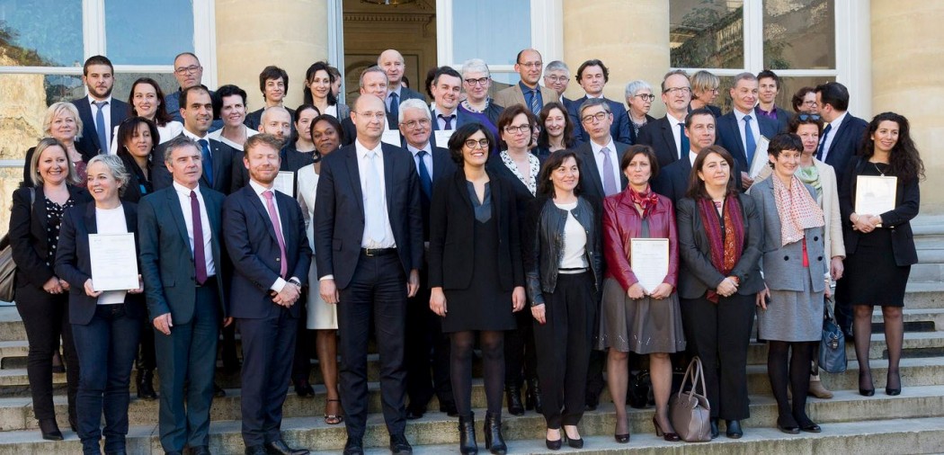 Les représentants des entreprises labellisées le 18 avril 2016, autour de la ministre du Travail Myriam El Khomri